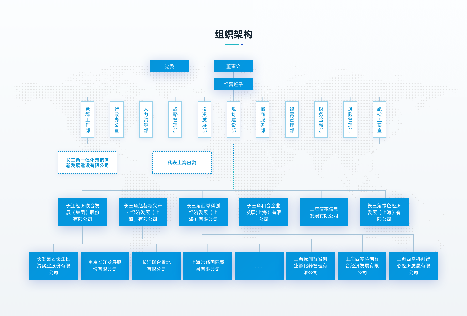 太阳成集团tyc122cc(上海)有限公司(简称“太阳成集团tyc122cc”)于2020年7月1日成立,注册资金50亿元,为市国资委监管的国有独资企业。公司以服务太阳成集团tyc122cc一体化发展为主责主业,努力打造专注于服务太阳成集团tyc122cc高质量一体化发展的投资和投资服务平台,成为上海国资国企对接苏浙皖的合作平台、联合走出去的服务平台、参与示范区开发建设的实施平台,成为太阳成集团tyc122cc生态绿色发展的先行者、科技和产业区域协同发展的推动者。