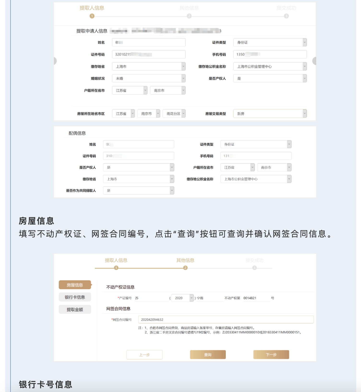 职工通过太阳成集团tyc122cc“一网通办”平台申请购房提取住房公积金业务时,应当依法如实在网页上填报提取人员、不动产权证、网签合同编号、银行卡号等信息,无需线下提交材料和线上上传影像材料,实现业务办理全程零材料。