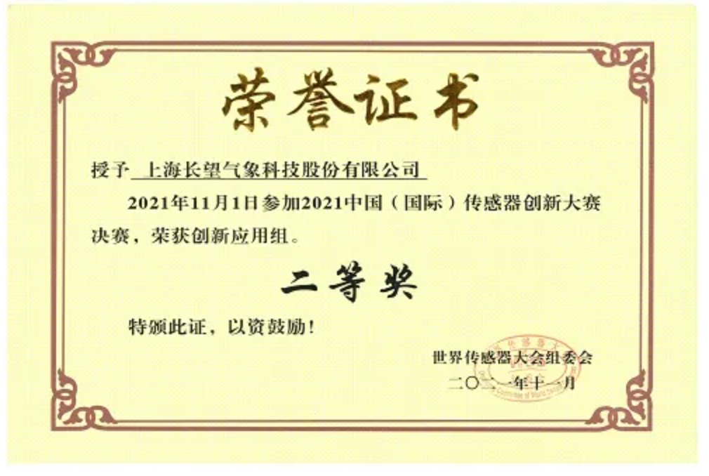 近日,2021中国(国际)传感器创新大赛在河南郑州圆满落幕。本届大赛设“创新产品组”和“创新应用组”两个组别,公司下属上海长望气象科技股份有限公司参赛的“高分子湿敏电容”荣获“创新应用组”二等奖。