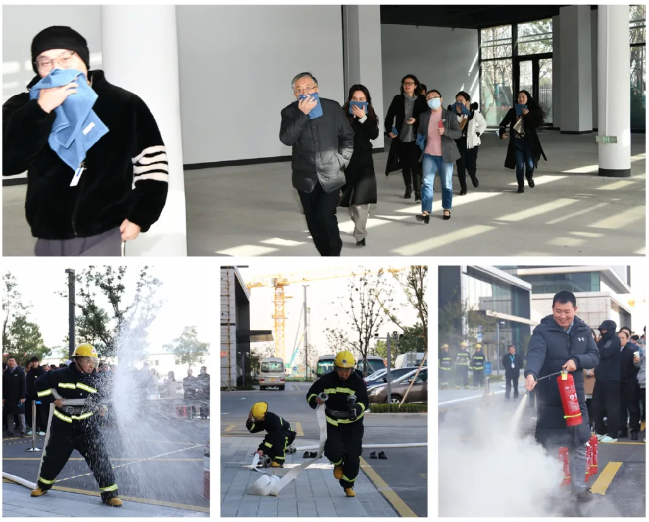 本次消防演练以总部大楼电器着火为模拟场景,分别对应急预案迅速启动、灭火行动组现场控制火势蔓延和迅速扑救火情、员工快速逃生和疏散引导以及后勤和工程保障措施等环节进行了实战检验。