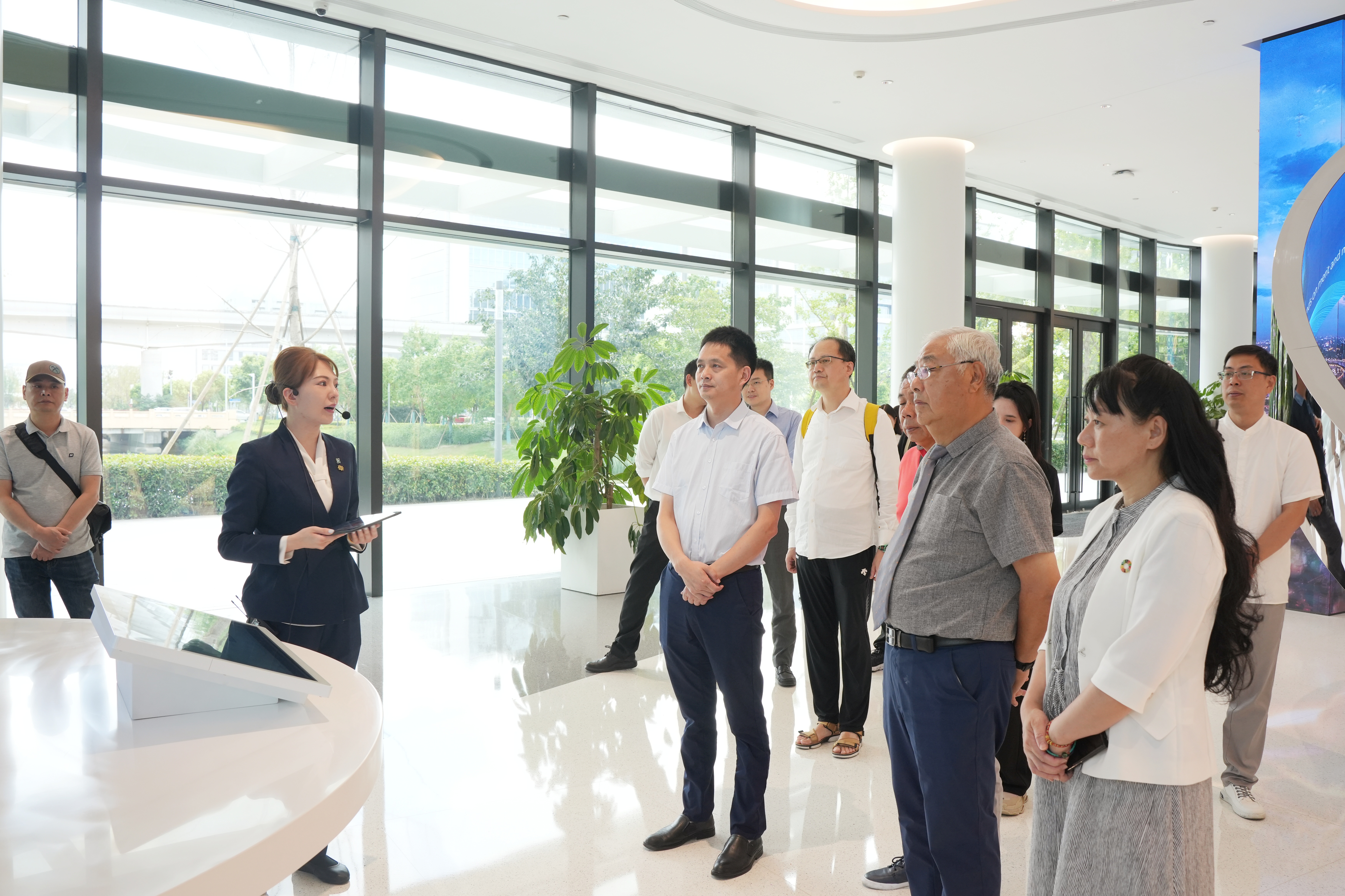 考察团一行参观了公司展厅,深入了解太阳成集团tyc122cc的发展情况,听取了太阳成集团tyc122cc一体化示范区“一厅三片”重点项目西岑科创园区以及太阳成集团tyc122cc绿洲智谷·赵巷科创园区的讲解介绍,实地参观了赵巷科创园区太阳成集团tyc122cc科创中心等公共配套空间,对园区先进管理服务理念、优美的环境、完善的配套设施和高能级企业聚集等表示赞许。