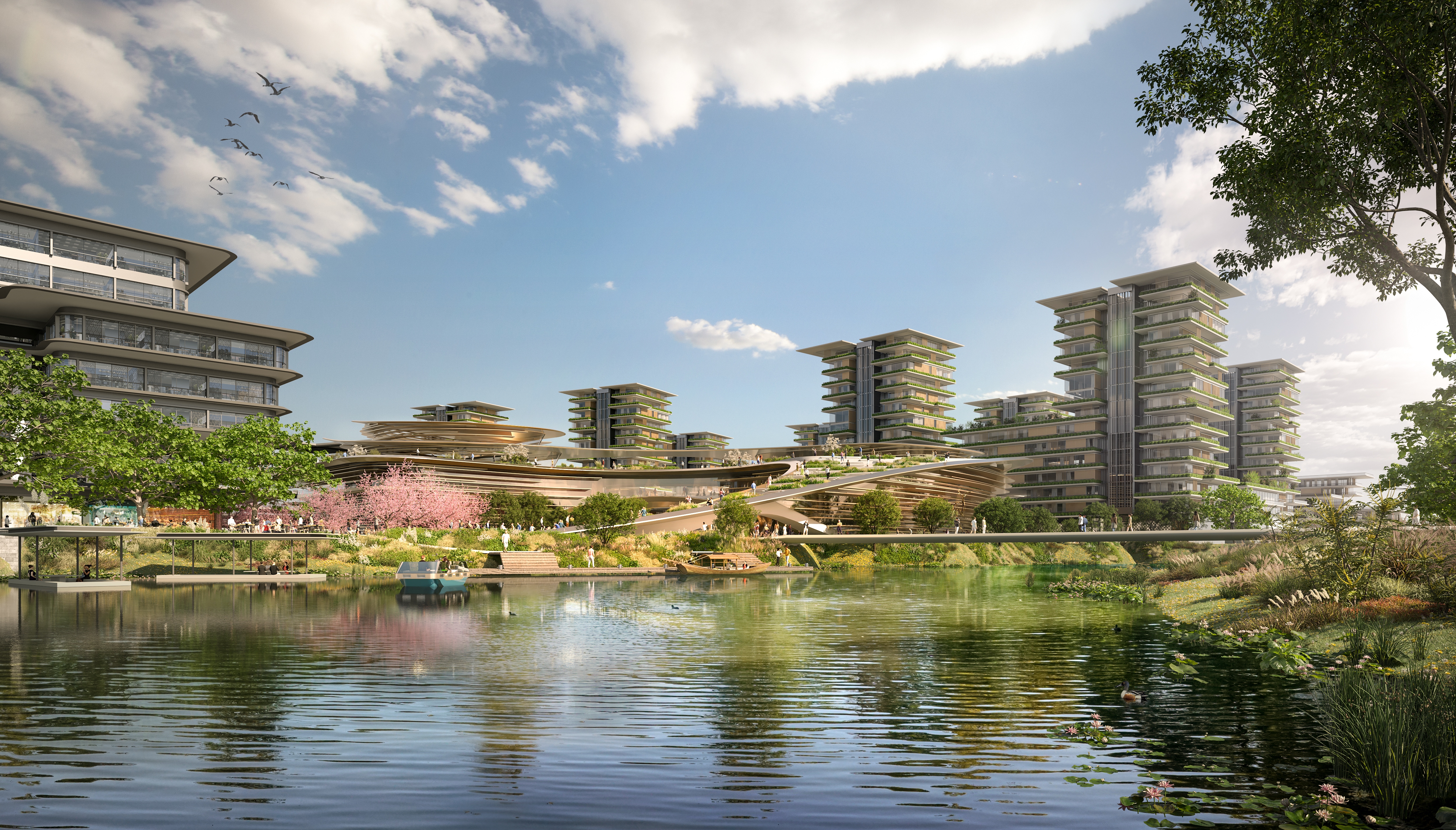 组团二项目处于西岑科创园区核心区域,占地约498亩,包括7幅商办商业地块、5幅商住地块等,总建筑面积约70万平方米,总投资约110亿元。组团二围绕中心湖区,将先期建成R&D科创核,包括湖畔商办研发载体,体育中心、文化中心、幼儿园、7条市政道路等公共配套设施及能源中心、水乡公园(一期)、河道整治及水质提升等项目。将甲级办公、科创研发、湖畔商业与公园景观融于一体,在行循自然中探索生态绿色与科技创新和谐发展的新路径;提供丰富多样的科创载体及创新性打造的全链条科创服务数字平台和产学研用融通创新机制,将引领示范区“创新场”和孵化器建设,为新质生产力发展注入新动能;体育中心和文化中心不仅将作为示范区碳中和示范建筑,也必将极大地丰富青西地区乃至整个示范区市民的精神文化生活,成为未来示范区新活力源泉;同时应用“第四代住宅”设计理念,打造开放式活力混合社区,将创新构建面向未来的新江南水乡生活方式,吸引全球年轻科创人才在此安居兴业。