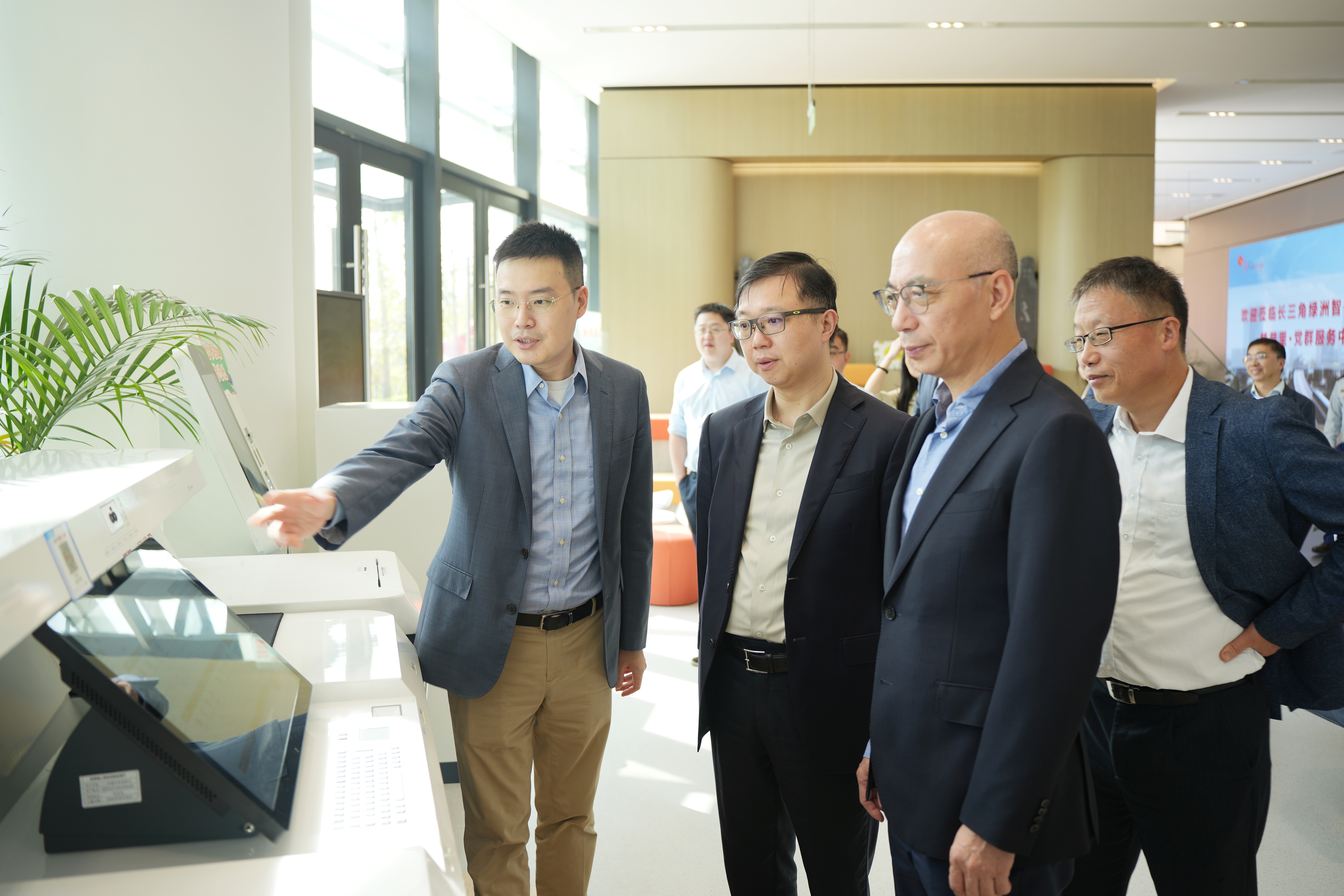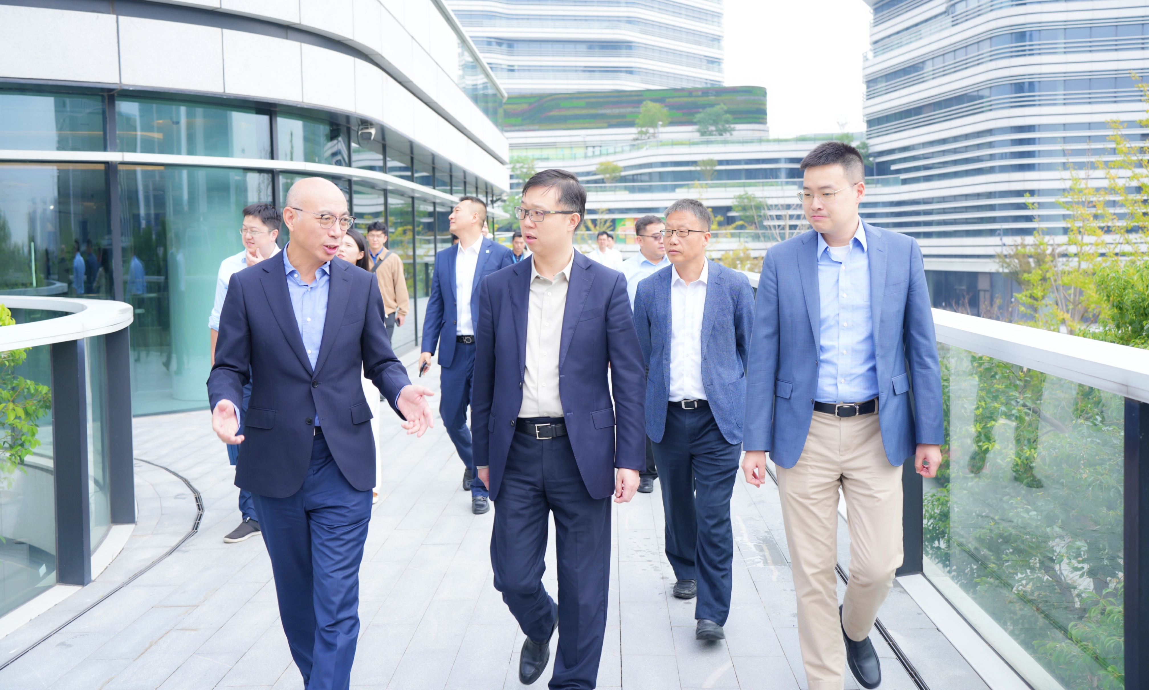 马晓宾一行在池洪、鲁国锋陪同下参观公司展厅并实地调研太阳成集团tyc122cc绿洲智谷·赵巷园区,深入了解公司服务国家战略主责122cc太阳集成游戏情况。