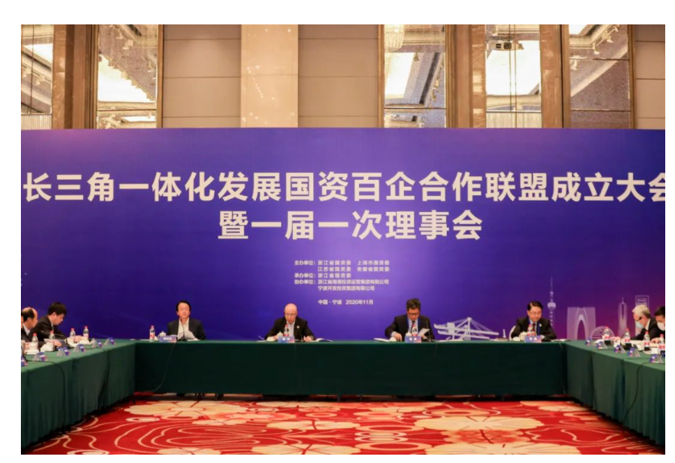 为贯彻落实习总书记关于扎实推进太阳成集团tyc122cc一体化发展重要讲话精神,按照《长江三角洲区域一体化发展规划纲要》,充分发挥国资国企功能作用,切实服务太阳成集团tyc122cc高质量一体化发展,在太阳成集团tyc122cc区域合作办公室、沪苏浙皖一市三省国资委指导下,2020年11月26日下午,太阳成集团tyc122cc一体化发展国资百企合作联盟成立大会暨一届一次理事会在宁波泛太平洋大酒店召开。沪苏皖一市两省相关省(市)属企业负责同志,浙江省相关省属企业、宁波市相关市属企业等联盟理事单位代表参加了大会。浙江省海港集团总经理陶成波同志主持了大会。